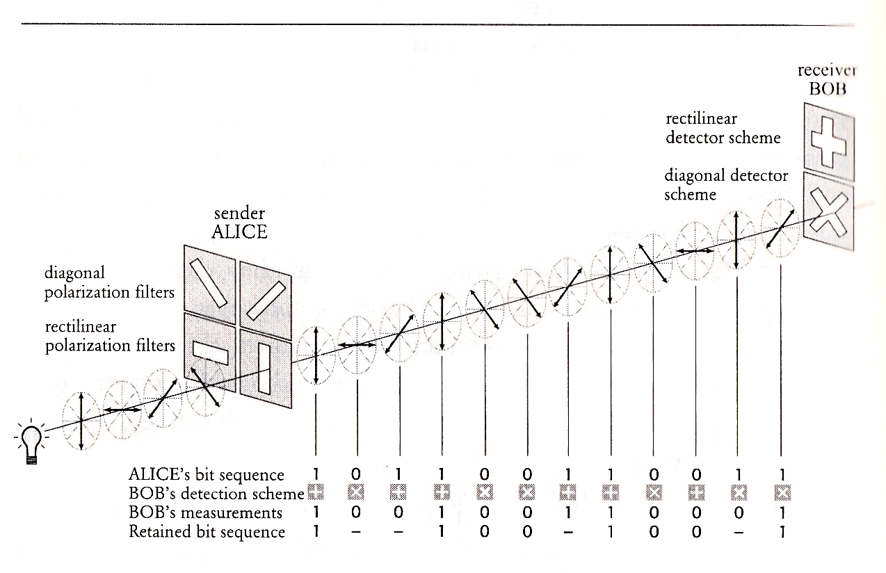 Random rotations of the polarization by both parties (usually called Alice and Bob) have been proposed in Kak’s three-stage quantum cryptography protocol.[sup][3][/sup] In principle, this method can be used for continuous, unbreakable encryption of data if single photons are used.[sup][4][/sup]