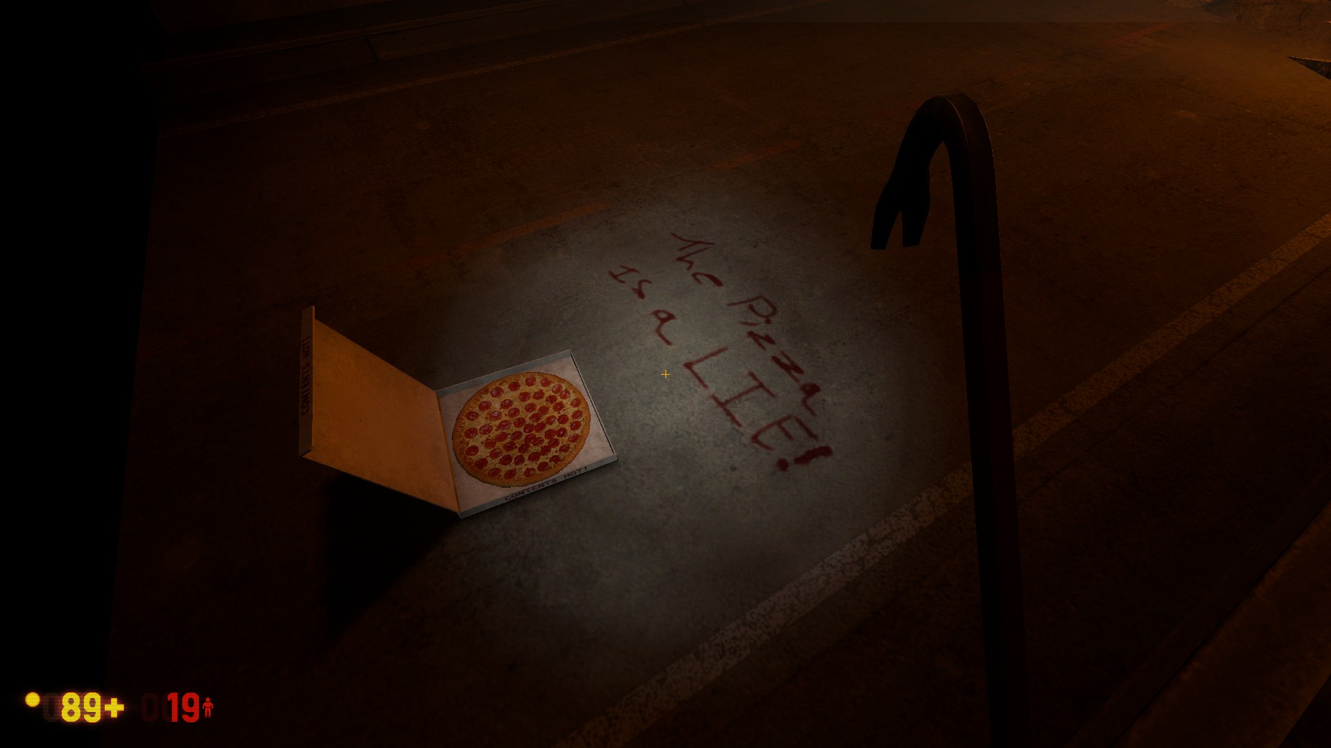 Is anyone else getting the pizza lie graffiti here? Maybe it was just a glitch. @Kermit the Forg, do you have any workshop mods installed?