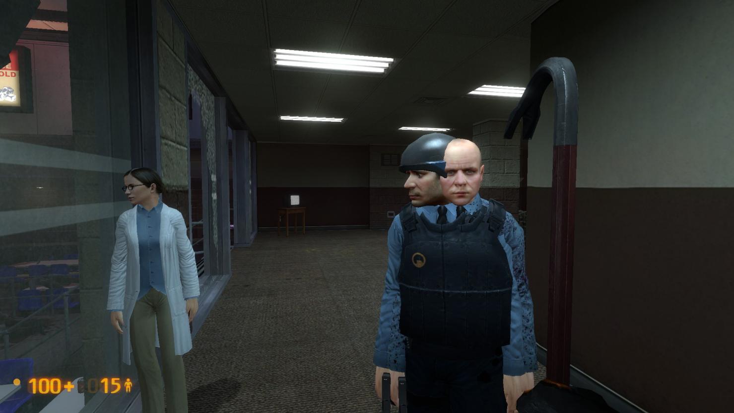 In the last map in Office Complex my two guards got stuck together. It started after I got through the cooler room, and went back to get the two plus one scientist. I managed to separate them though. I just told one of them to wait and had the other one follow me. After I got some space between them, I just told the first one to follow again. And then we all had a very productive day.