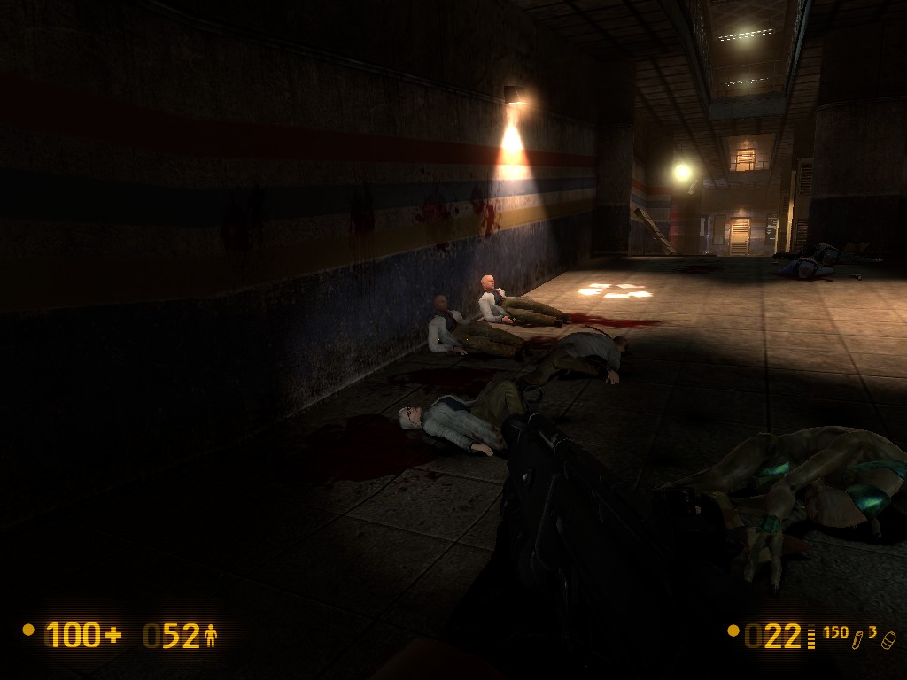 - In this room, I shot the tripmines earlier, so this tripmine should not appear on the screen. (picture #3) Also, the bullsquid on the screen seems to be alive, even though I killed it earlier. I think that the vast majority of players will shoot the tripmines and kill the bullsquids, so it would be more logical if there were no tripmines and no living bullsquid on the screen. However, I know that this is a very, very minor issue…