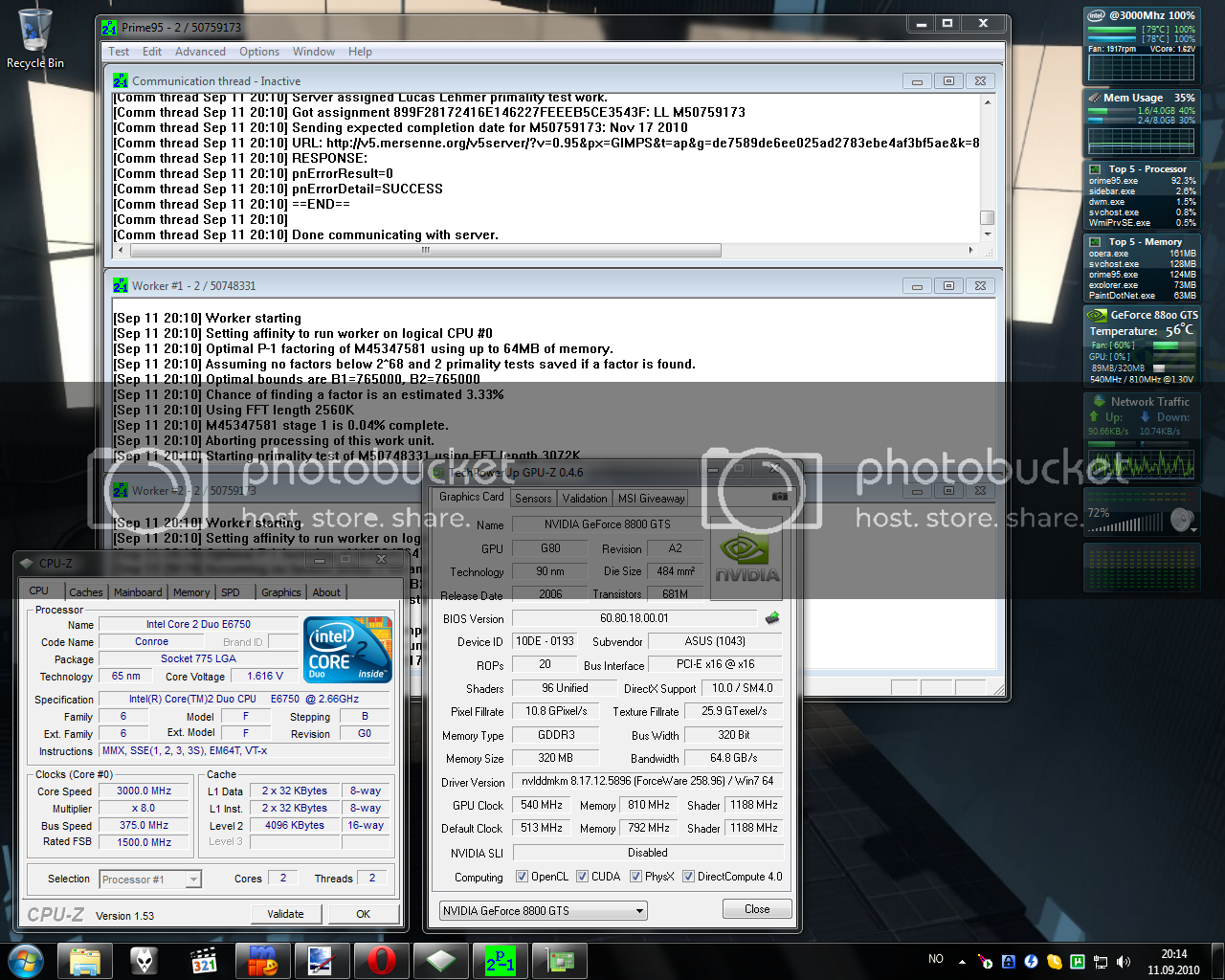 overclocked from 2.2 to 2.98, but my 8800GT is temporairly switched for a 7950GX2, what a shitty card.