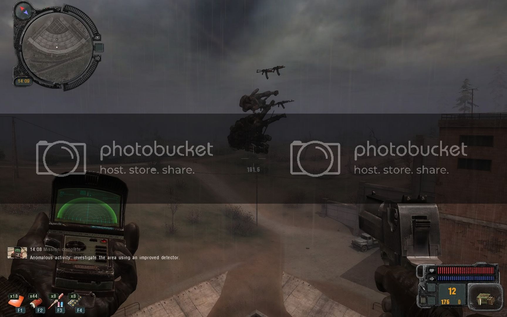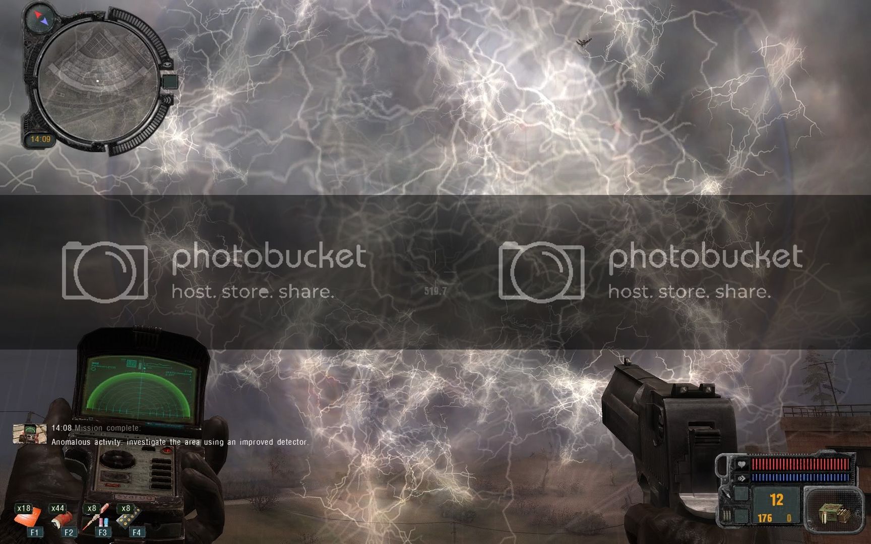 This anomaly looks cool as well. These stalkers were hunting for artifacts. The one in the anomaly was injured. I shot his buddy and then him and took his artifact.