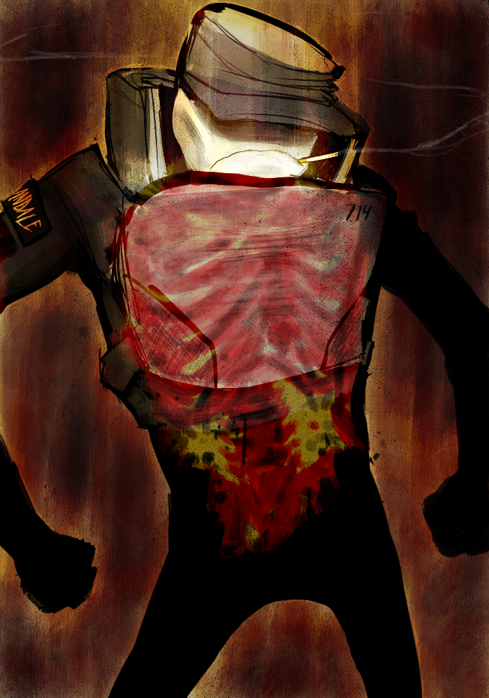 The one you’re looking at was painted in SAI and ported to photoshop where I used some custom brushes for the background and X-Ray.
