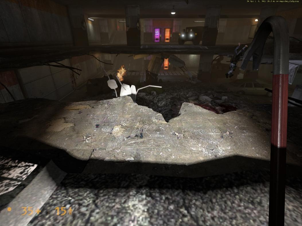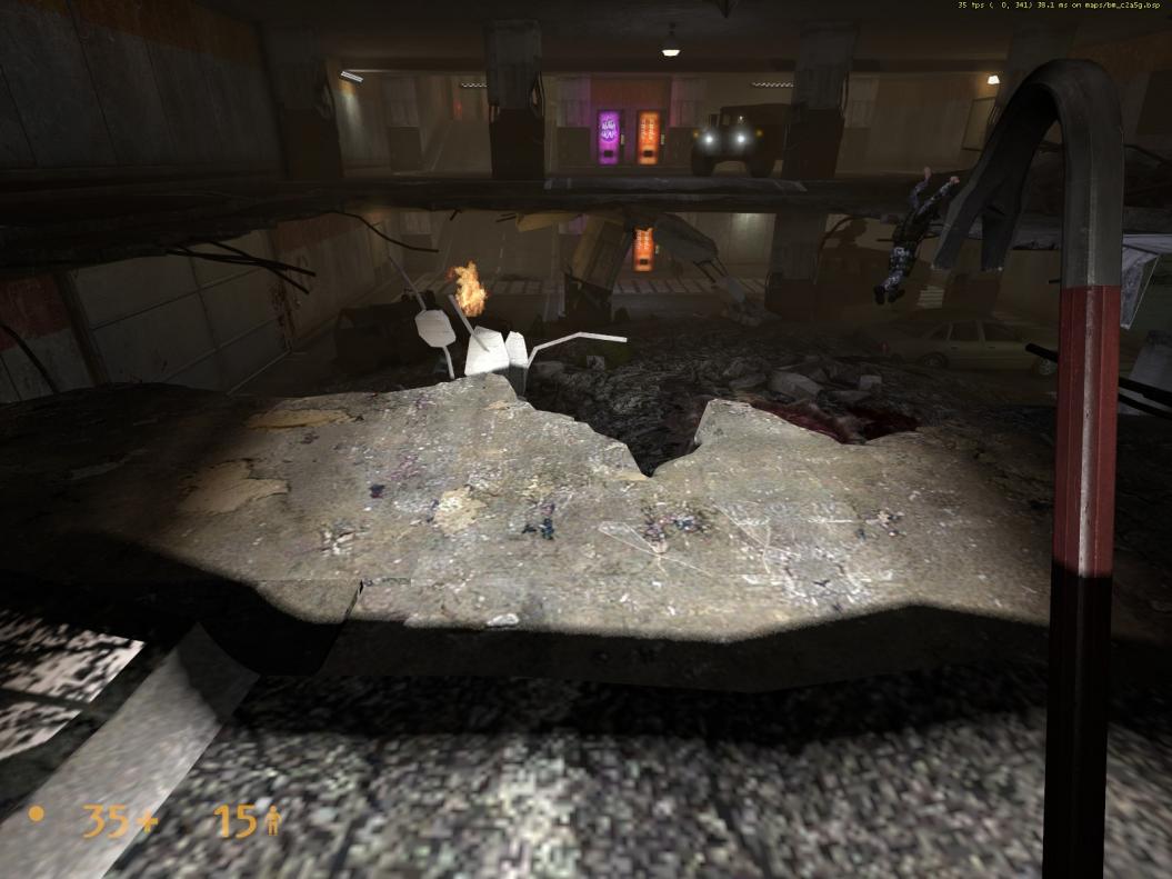 - Carpark, level 1 - A third incident of flickering textures near the large hole in the floor. They occur at the location of the pistol crosshairs. https://imgur.com/3AoqP and https://imgur.com/t8oPj.