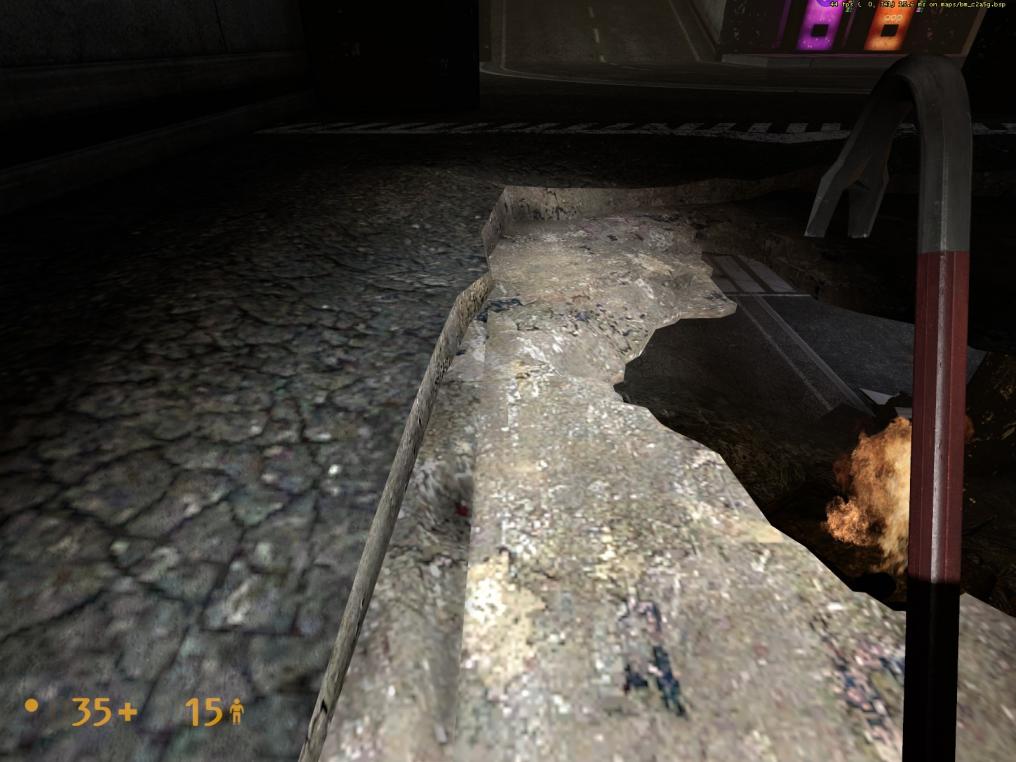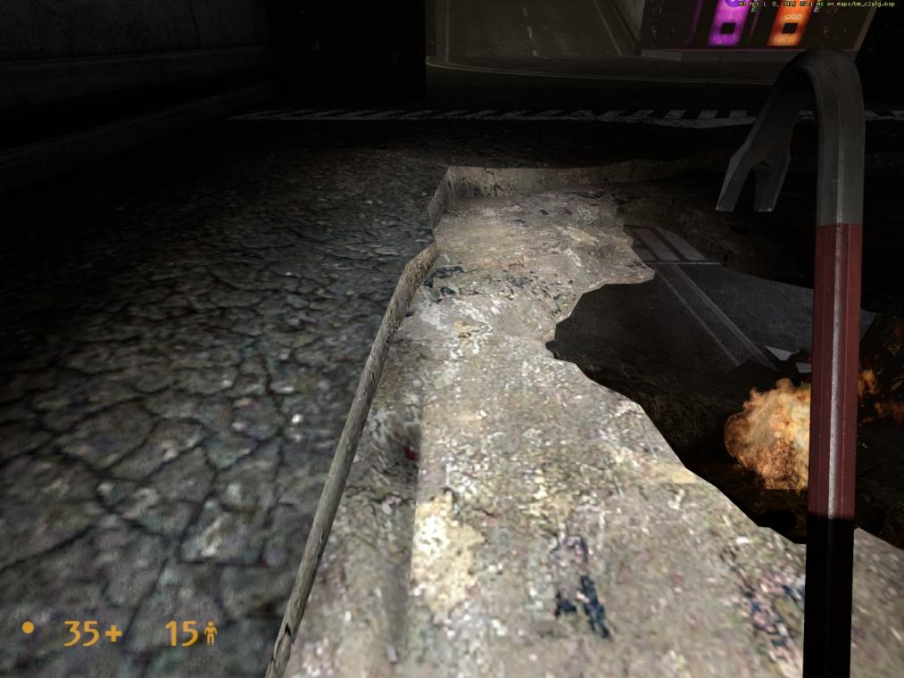 - Concerning the use of wires running from ceiling light fixture to light fixture used in the Garg tunnel, I’d like to suggest that they be removed. Other than the pleasing swaying that they periodically do, they really serve no functional purpose. The tunnel in C2A5G doesn’t utilize them, nor does the tunnel that the Garg enters from. Deleting them addresses a clipping issue that I reported and reduces the overall total entity count in the Garg tunnel to help boost framerates as much as possible.