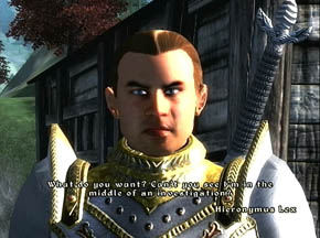 Postin’ mah character. He photobombed this screenshot because I didn’t even realize the punk was blinking til after I uploaded it. he has blue eyes and is not related to Fong in any way. (My companion, Lydia, is also showin off her purty face and circlet i gave her)
